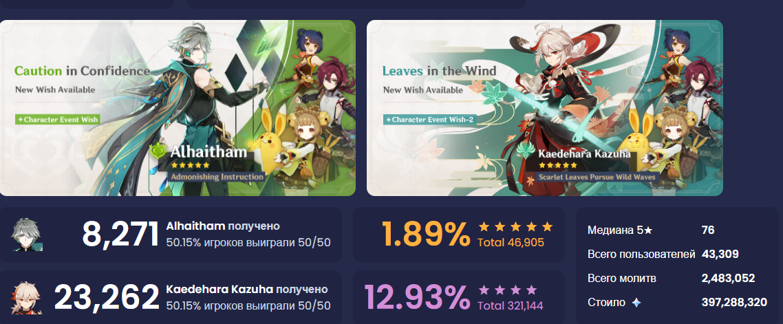 ✦ Счетчик истории роллов https://paimon.moe/wish с расписанием ивентов, базой данных и отслеживанием достижений.
