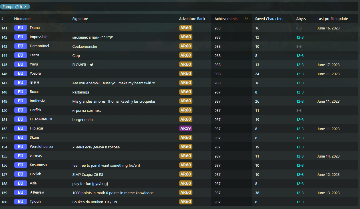✦ Показать своих персонажей: https://enka.shinshin.moe/ | Лидерборды: https://akasha.cv/ | Пикрейты: https://akashadata.com