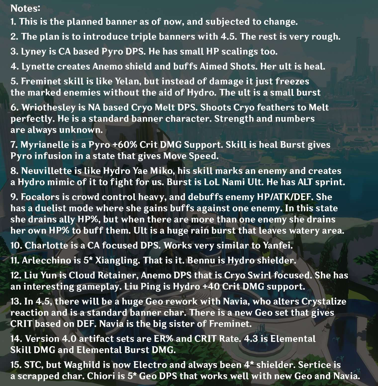 ✦ Базы данных https://ambr.top/ и https://genshin.honeyhunterworld.com/ с персонажами, вещами и ЗБТ-контентом.