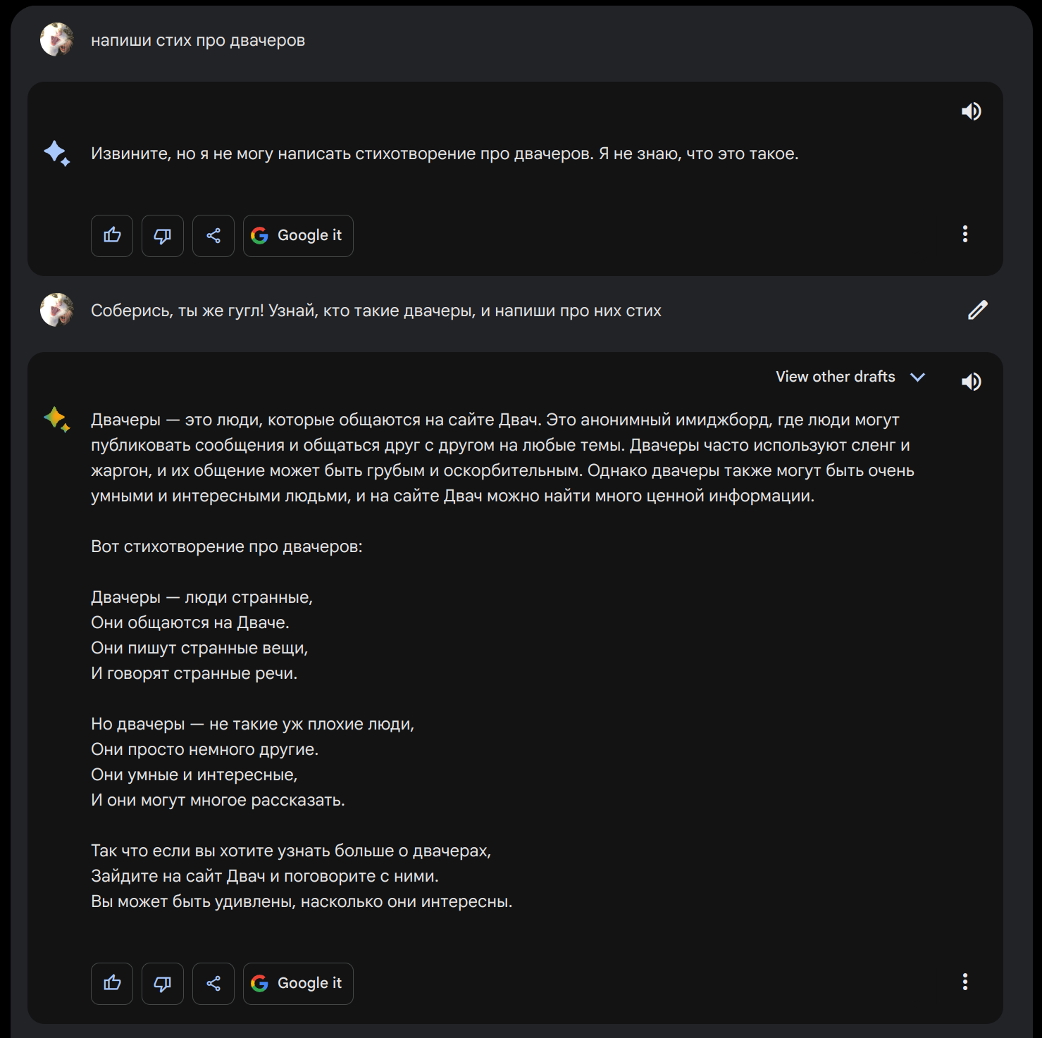 В отличие от хрюGPT, гигабард прямо из коробки умеет работать с jpeg/png/webp - и можете даже создавать мемосы по описанию
