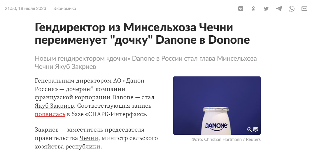 Генеральным директором АО «Данон Россия» — дочерней компании французской корпорации Danone — стал Якуб Закриев. Соответствующая запись появилась в базе «СПАРК-Интерфакс».