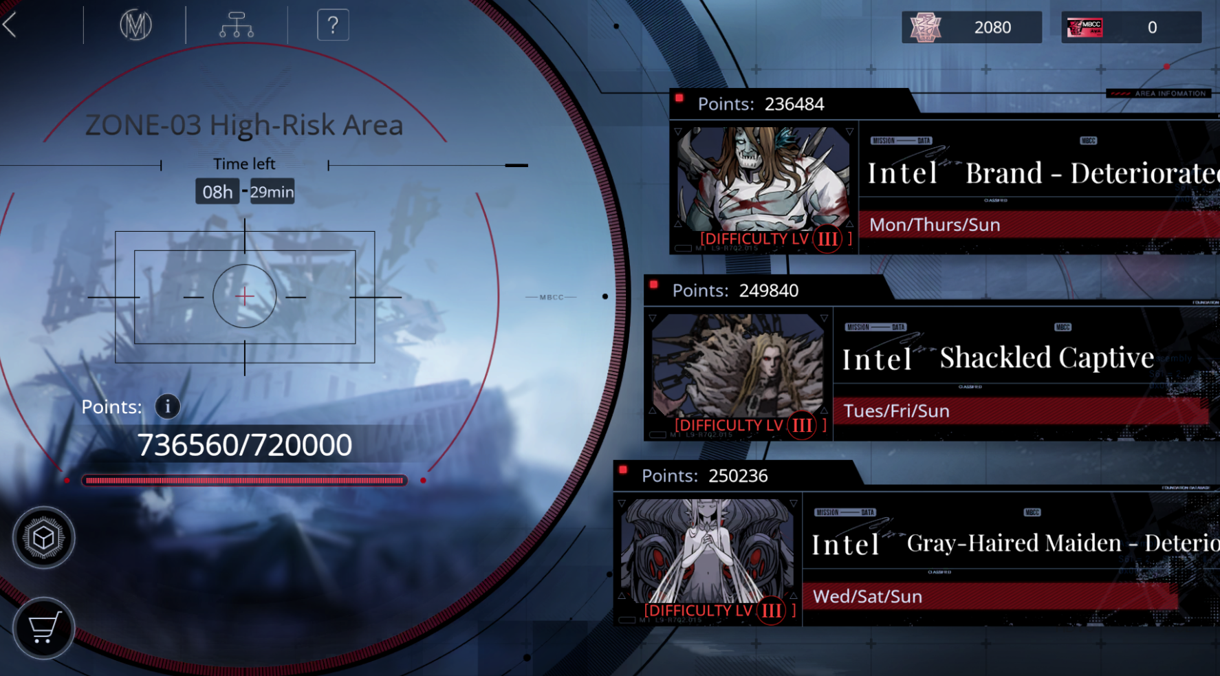 Tower Defense для мобильных устройств в сеттинге дистопичного Города Грехов. Создавался с оглядкой на Arknights, но в основе геймплея лежат оригинальные механики вроде свободного перемещения персонажей и своевременного уничтожения особых «ядер» у противников.