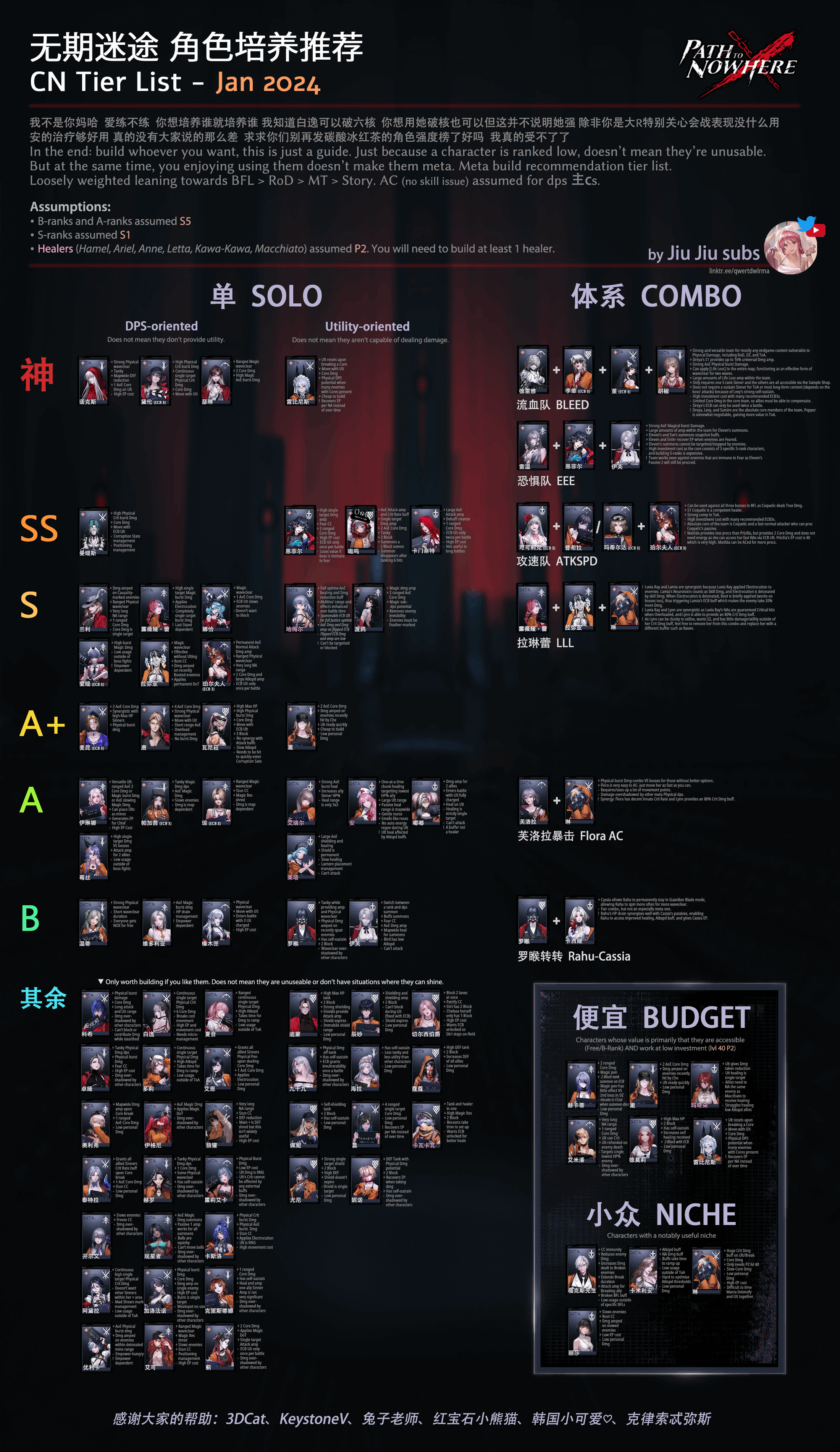 >>54560 Золотых персов не пропустишь точно (кроме Зои), Нокс дадут за задания новичка, остальных выловишь так или иначе, тем более что в игре хороший баланс и затащить можно даже синими и фиолетовыми персами. Сюжетки хватает для пары месяцев неторопливого прохождения, тем более в новых главах (9-10) очень желательно иметь две пати синнеров на физ и дамаг, с баферами 70лвл.