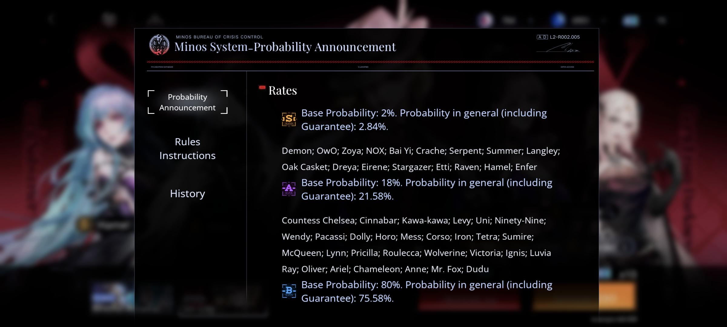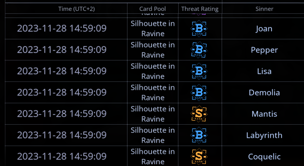 Типы из китайской версии, которых пока нет на глобале: Limited - временно доступные персонажи, в общий пул не попадают, но их вроде бы пообещали когда-нибудь реранить. Думаю, лимитки будут появляться раз в полгода. Integrated Tracking - пикрил, из него можно достать только 4 указанных грешников S-ранга. Странный баннер, но может быть неплох для новичков.
