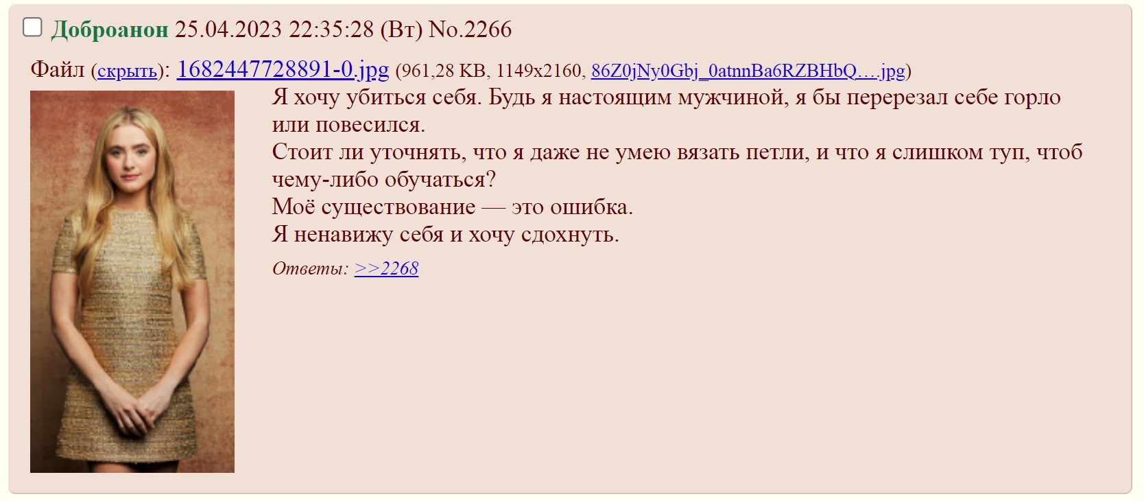 >>293928955 > ты из петушиного угла в отличие от меня В отличии от тебя, я даже не петух. Ты кстати ирокез случаем не носишь? Просто петухам гребни к лицу) > теперь сидишь на пособии? А разве это я сутками сру в треды? В отличии от тебя у меня нет времени заниматься такой хуитой, а что ты в 27 сутками чекаешь любые источники со знаменитостями это, как минимум, странно. >уже как поехавший клоун Разве это у меня жопа рвонькает от любого чиха? Разве кто-нибудь еще в этом треде вайпает трупами? Ты тупое и мерзкое животное. Я буду ссать тебе в рот каждый раз, когда мне будет нехуй делать, а ты будешь сидеть в треде и впитывать, ведь другого занятия у тебя судя по всему нет.