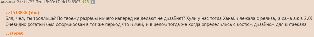 >>1519465 Да тут даже не дело в копирке. Дело в том что: 1) то что тебе что-то показали первым, не является доказательством что это что-то было сделано первым 2) Михойо как и многие разрабы сервис игр, делают контент наперед. А по из логике, они сначала сделали 1.0 с Мей конусом, и только после этого блять занимались содержимым 1.1 и 1.2. не ну я понимаю что там опять таки было что доделать 100%, но что бы блять не иметь тупо дизайна одного из важнейших персов, но при этом имея уже модели рендеры Ханаби Лебедя для 2.0