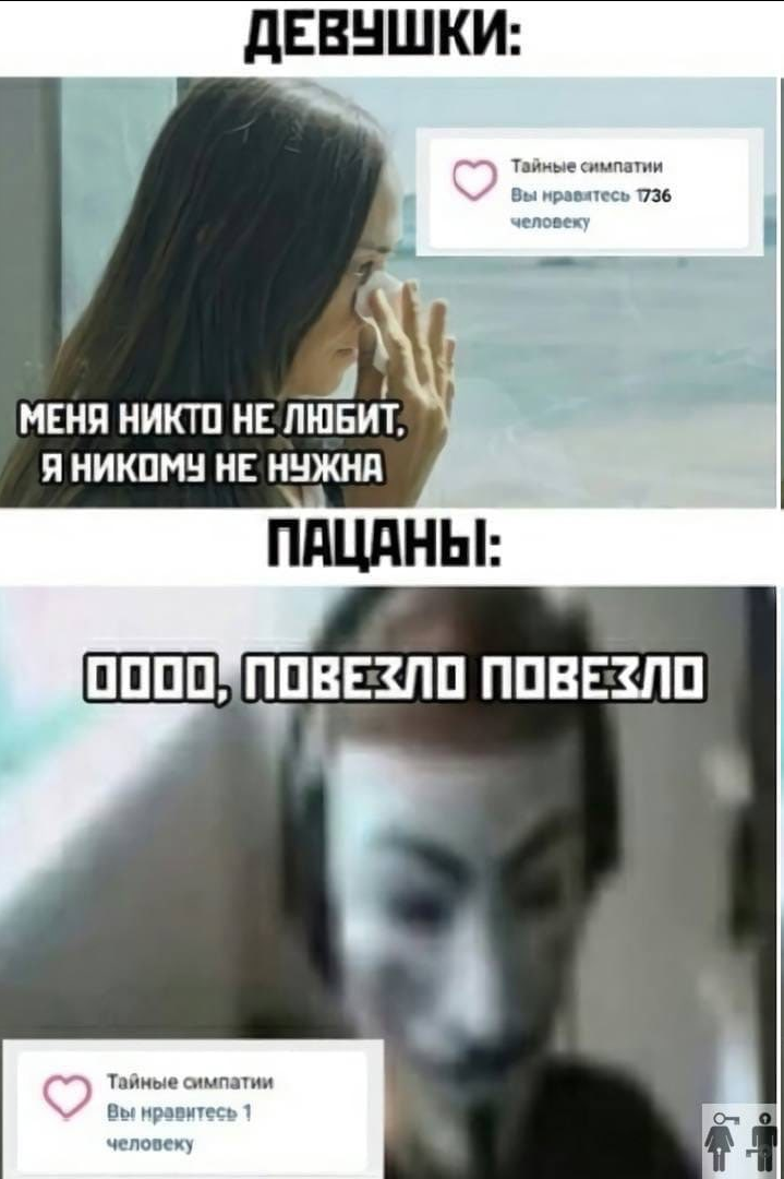 Ну да, не повезло родиться умной тяночкой, родился чушком неудачником, что поделать.