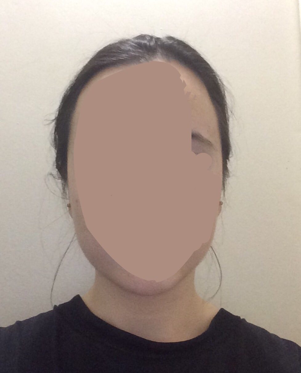 Голова под наклоном, так мой лоб занимает около трети лица. У меня даже в школе было прозвище из-за формы головы.