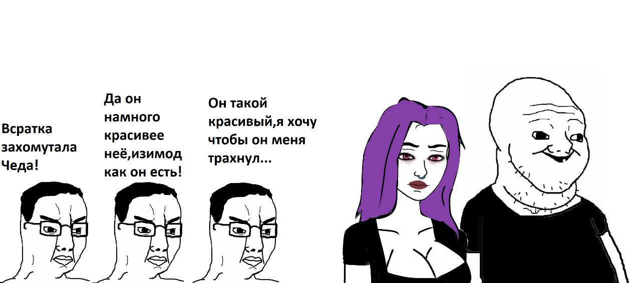 Имелось ввиду что внешка кардинально отличается с мейком и без. Да и всё равно на любую всратку найдётся фетишист которой она понравится. Хотя бы та тян которую травили в мдк за внешку. Даже такой всратой она смогла выйти замуж за обычнокуна. Омежные всратаны не кому не нравятся.