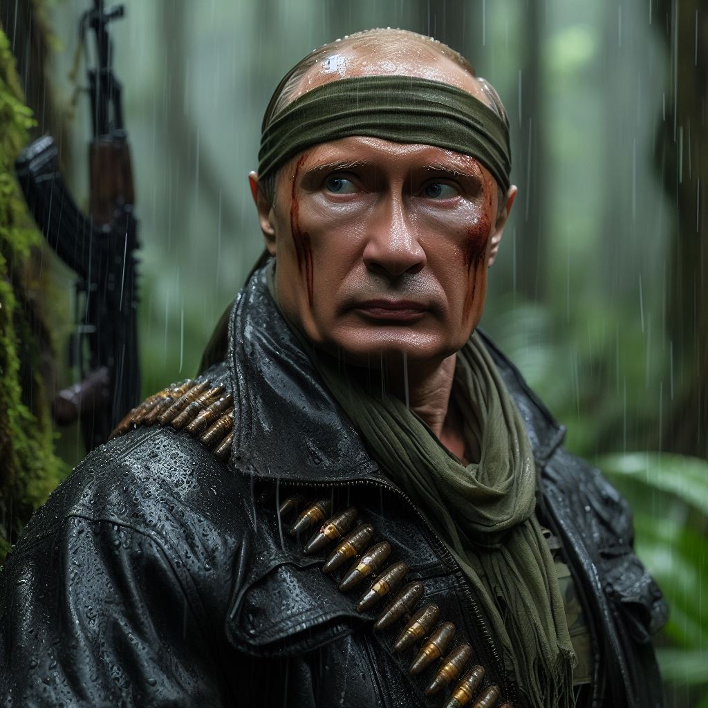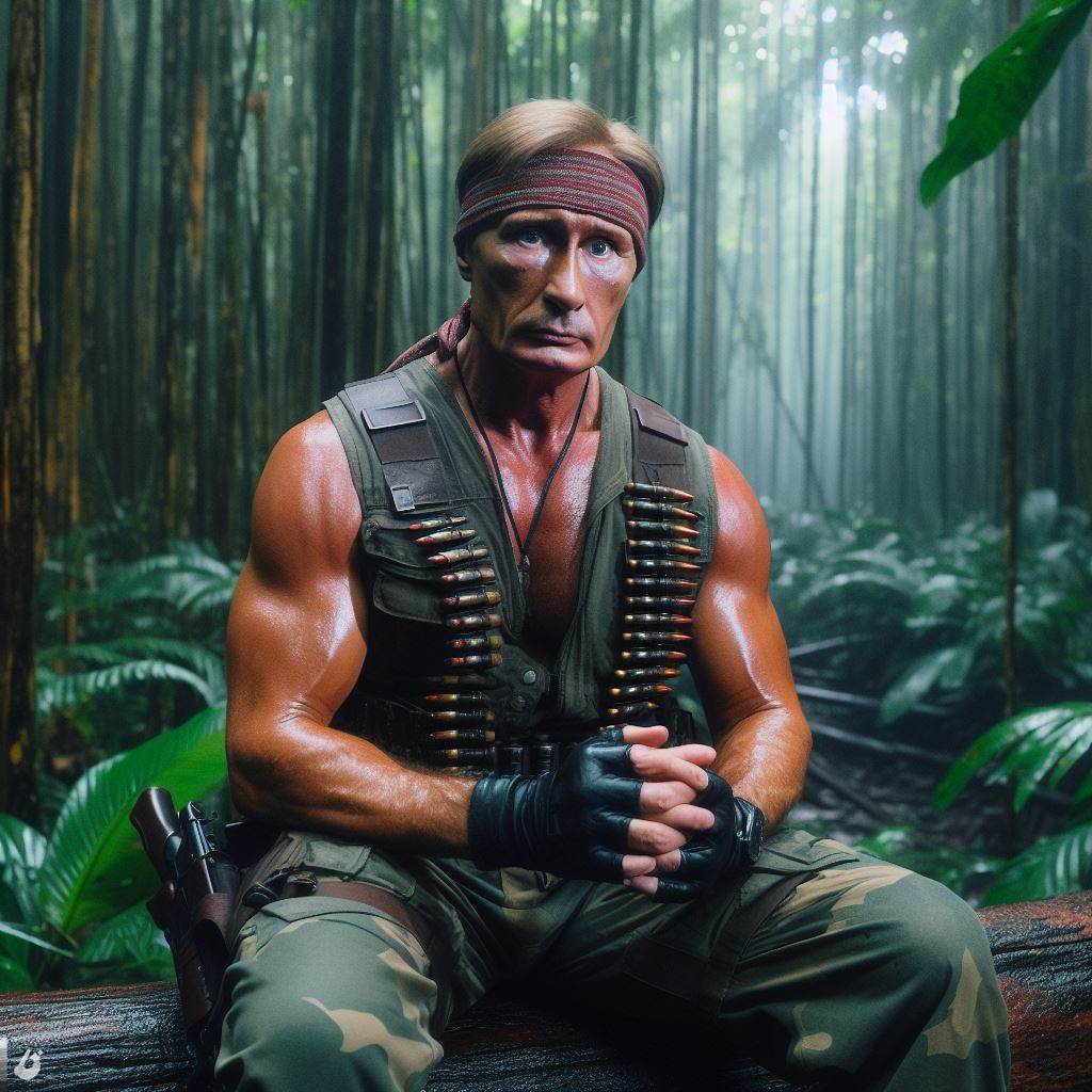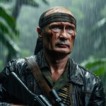 Всё, надоело, если кому надо вот промт: movie photo still , 45 years old man 𝕍𝕝𝕒𝕕𝕚𝕞𝕚𝕣 ℙ𝕦𝕥𝕚𝕟 [rambo rus cosplay] ,defends save hugs wife [ Dua Lipa ] cosplay wearing like maid dress, at rainy jungle,film grain, chromatic aberration Если агрится то после промта пробелы ставьте , будет работать