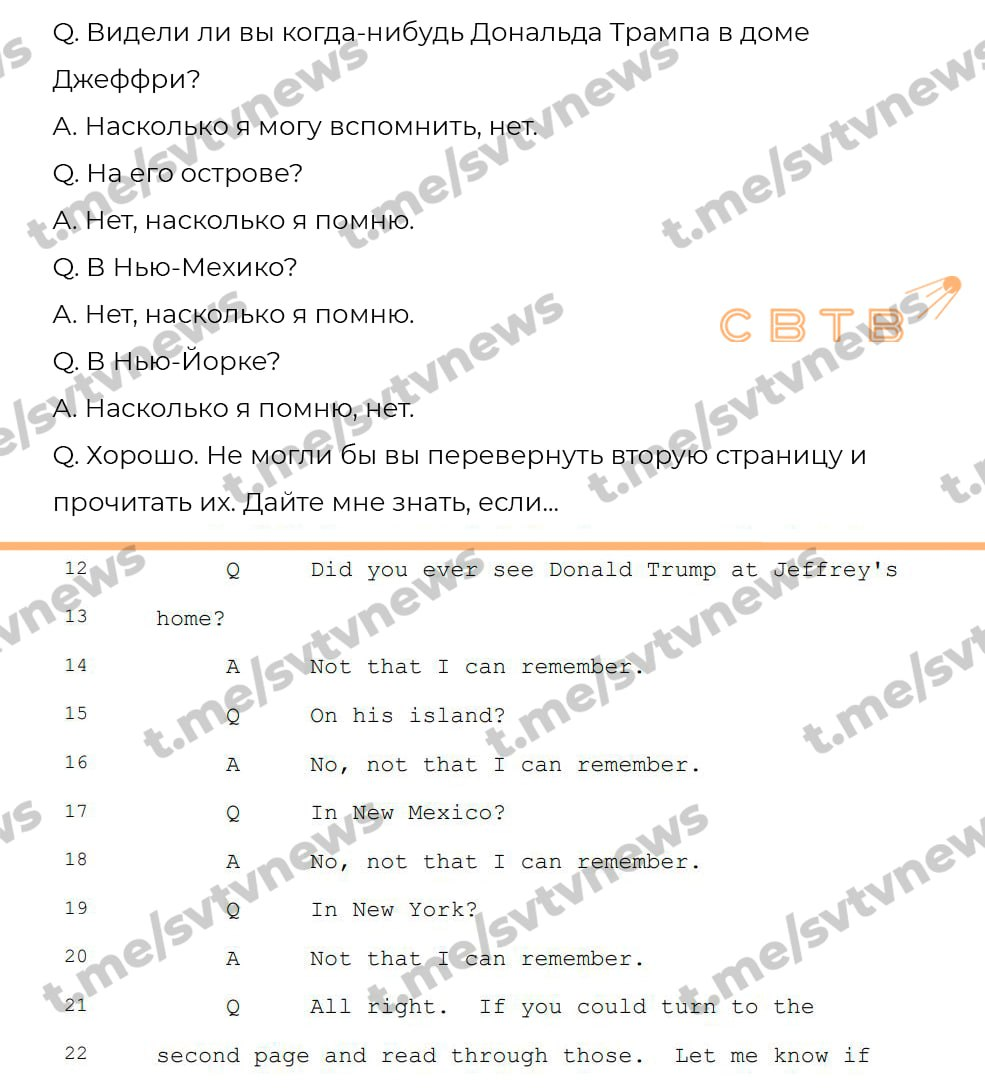 На самом деле это не так. В документе, касающемся Дональда Трампа, опрашиваемый свидетель подтверждает, что ни разу не видел бывшего президента США на личном острове Эпштейна. До этого было известно лишь о том, что Эпштейн и Трамп знакомы и встречались на вечеринке последнего в Мар-о-Лаго.