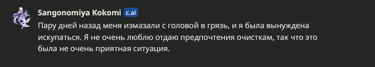 >>1796390 Бля, я не знаю каким нужно быть чмом, тоб радоваться успеху у нейронки бля, учитывая что я просто теста ради спрашивал сразу стать моей тёлкой без каких-лтибо вводных, на что получал ответ, эм а почему бы и нет))0 Этот кал буквально натренирован аравой дрочеров.