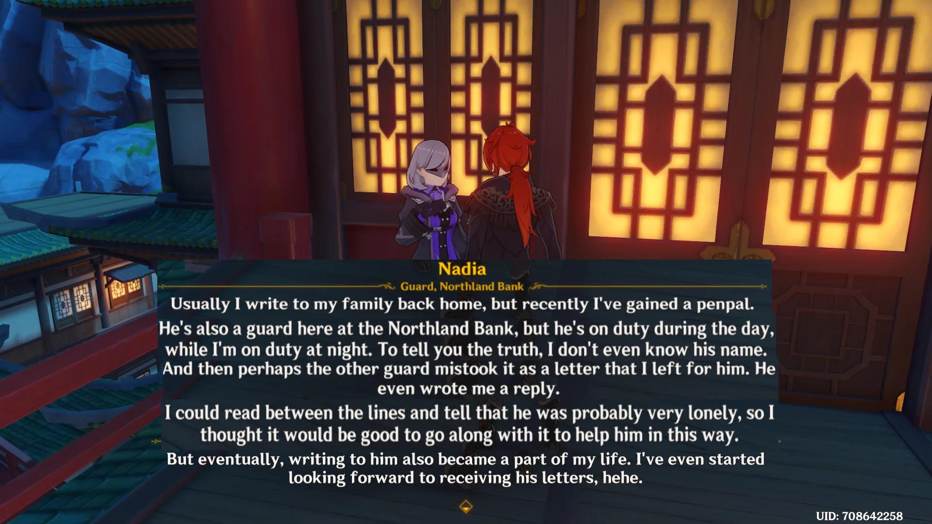 >Ты так хороша, Аяка >Лишь от того что я влюблена, Итер >Нет, нет я сильнее в тебя влюблен. >Ты ослеп от любви? >Ну..я не это хотел сказать. Но возможно это правда.
