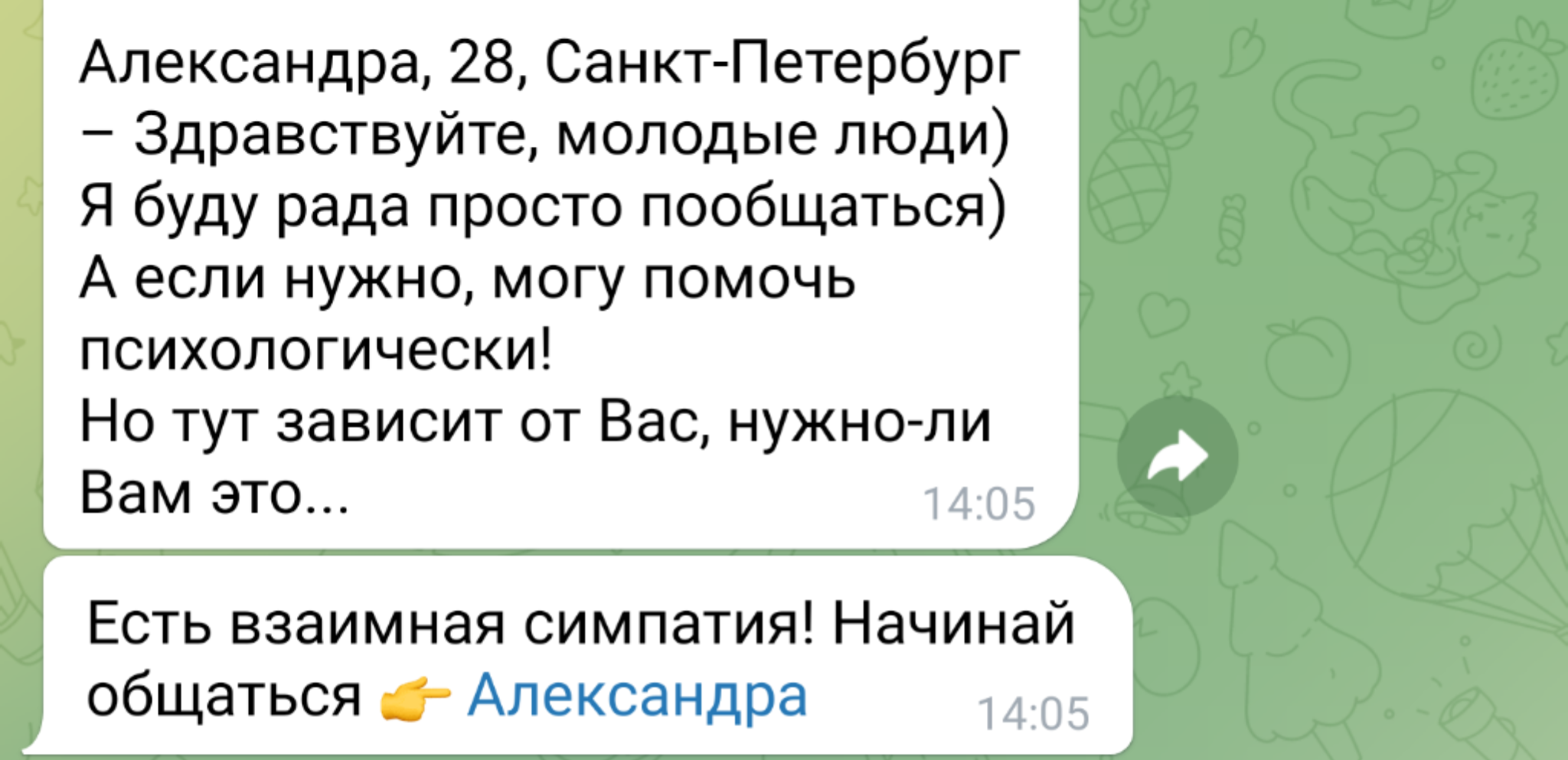 >>9388308 Фишка то в том, что они с первых строк в тг начинают на отьебись общаться, то есть я при всем желании еще никак не мог бы раскрыться как душный или долбоеб