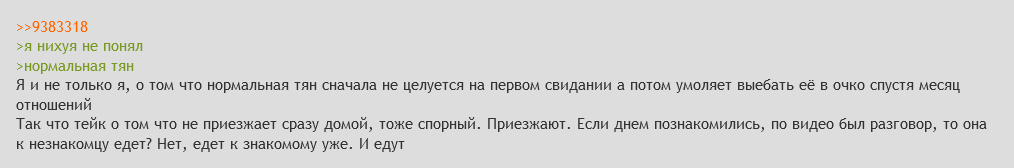 >Тебе, чтобы десакрализировать, нужно вкатиться в отношач, и в нём себя поставить лидом И опять я пришел в начало. Потому что именно с этой целью я изначально на сз и пришел, когда понял, что в повседневной жизни рандомную тянку встретить не вариант, и придется самому активничать чтобы получить ту самую моральную поддержку, и тело, которое можно обнять чтобы было приятно. После первых неудач, сказали относиться проще и не думать об отношениях, а просто лутать секс.