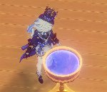 Е.Элем навык: Желтые ножницы, которые стягивают противников перед собой и наносят Гео урон. Генерирует 4 - 5 частиц энергии.