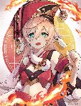 Q.Взрыв стихии: Тиори вращает ножницы на пальце, после чего вокруг неё появляются трое ножниц, которые быстро вращаются в воздухе и наносят урон противникам.