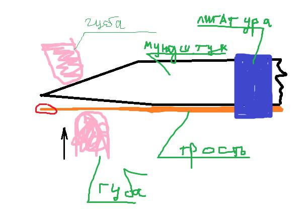 Вот тебе все ОСНЕ условно. Нижняя губа поджимает трость, от потока воздуха обведенный красным кончик трости начинает мелко вибрировать и издает звук. Типа как если листик/травинку/фантик приложить к губам и подуть чтобы она запищала, суть та же.