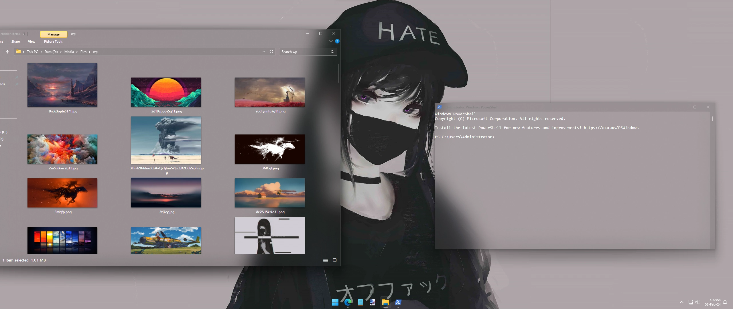 >>6842153 это тестовые обои, я буквально пару часов назад свежую винду накатил, всё ещё донастраивают и накатываю нужные мне приложения. обои сменю или чёрный фон как обычно оставлю