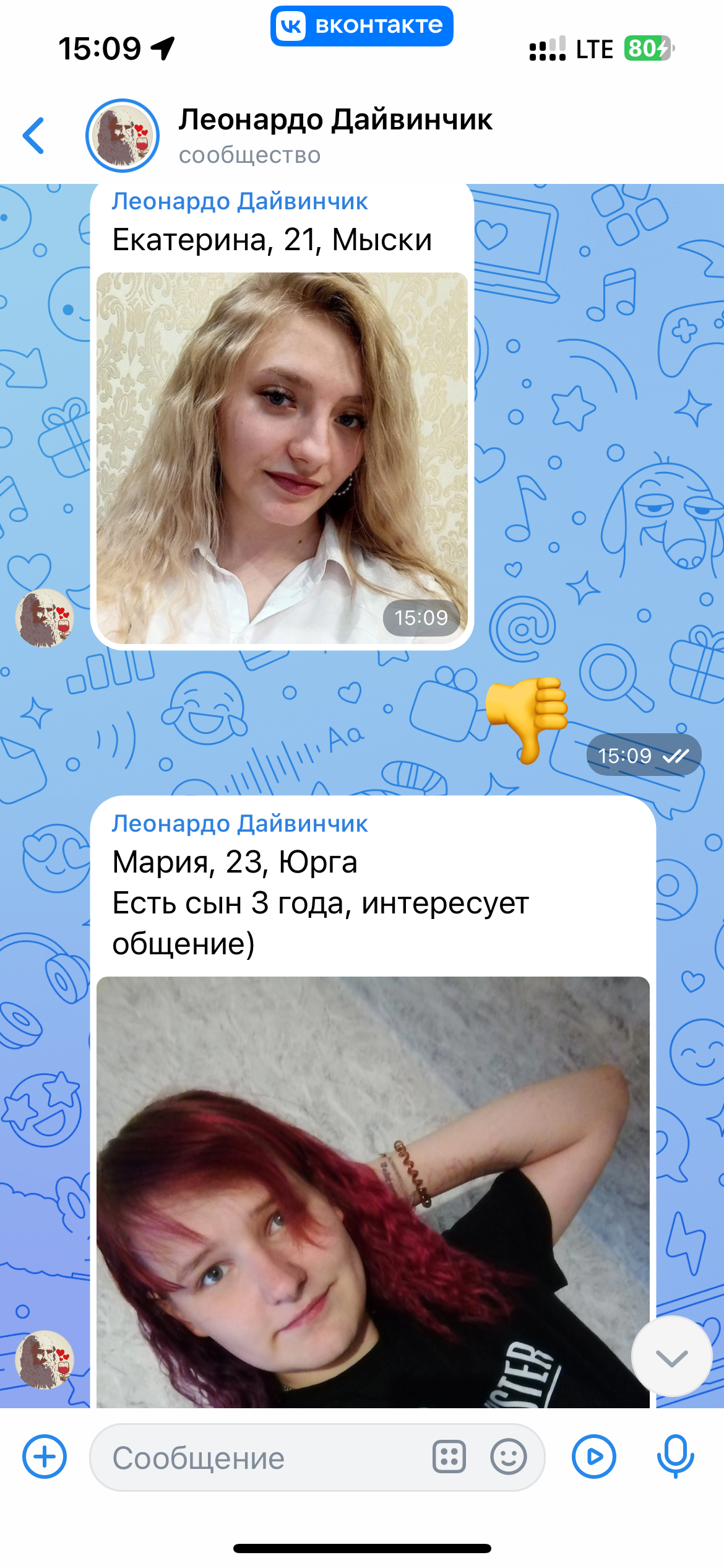 Бля как вы кого то находите в этом дв. Я в своем мухосранске заебался уже. Лайкают в ответ только одни скамеры, тянки которые хотят бабки, или просят приехать "угостить" а потом на место приезжает наряд ментов и тебя пакуют (не мой случай). Просто разводилы конченные. Сидел 2 недели бомбануд и удалил.
