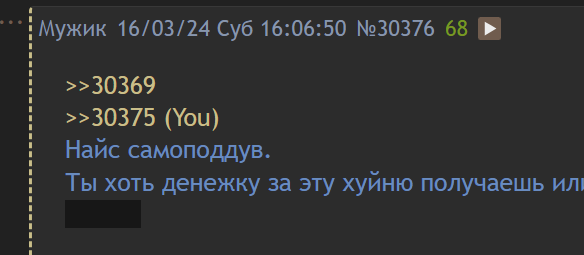 Это кто-то пытается в толстый троллинг. Дискутировать с ним совершенно непродуктивно: он будет игнорировать всё, что ты ему скажешь, а в ответ напишет "нищета", "быдло", "плодиться" в произвольном порядке. Когда этого персонажа становится слишком много в треде, я отправляю жалобы и его посты исчезают.