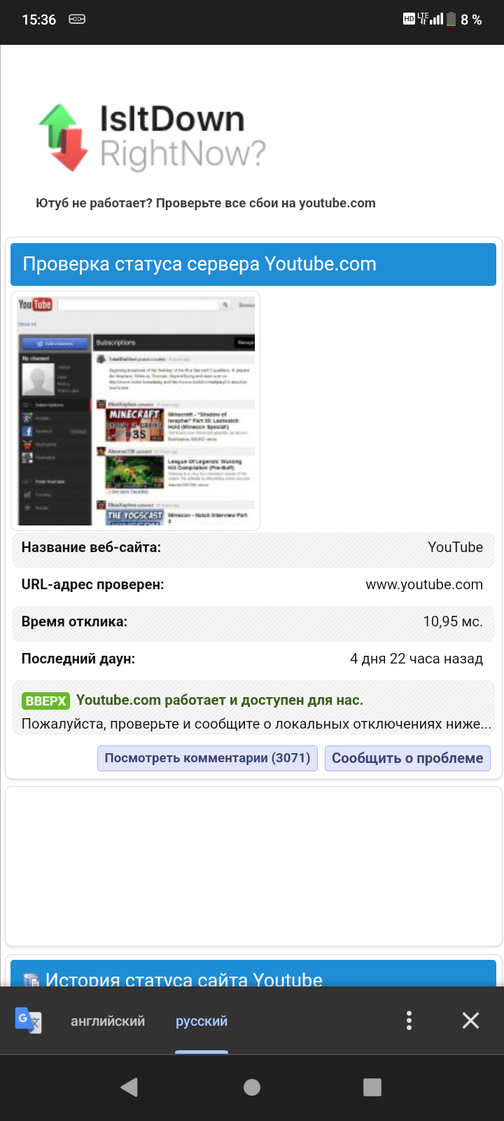 Не только ютуб. У меня весь день телега лагала и уже час не запускается вообще. Ни с телефона, ни с компа. Даже с другого провайдера и с мобильного интернета - глухо. Вот и чебурнет стучится в окно, а режимному терпильному стаду хуесосов рабов холопов недочеловеческому говну похуй. Их хоть еби в жопу и ссы на лицо - всё проглотят и стерпят.