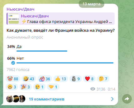 Я как-то сомневаюсь что Макрон вот так прямо пошлет войска на фронт. У французов вся армия 118 000 человек, для масштабов боев в Украине это очень мало.