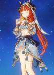 >Elemental burst: Energy 60, cooldown 15. Swirling the Wings of Blood and Fire of the Evil Moon, granting a life contract of 15% of the upper limit of life to Arecino, and causing fire element area damage.